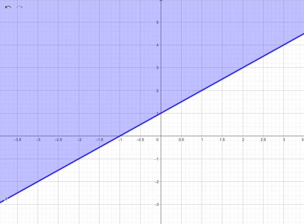 Sketch the graph of the relation R = {(x, y): y ≥ x + 1; x, y ∈ ℝ}.